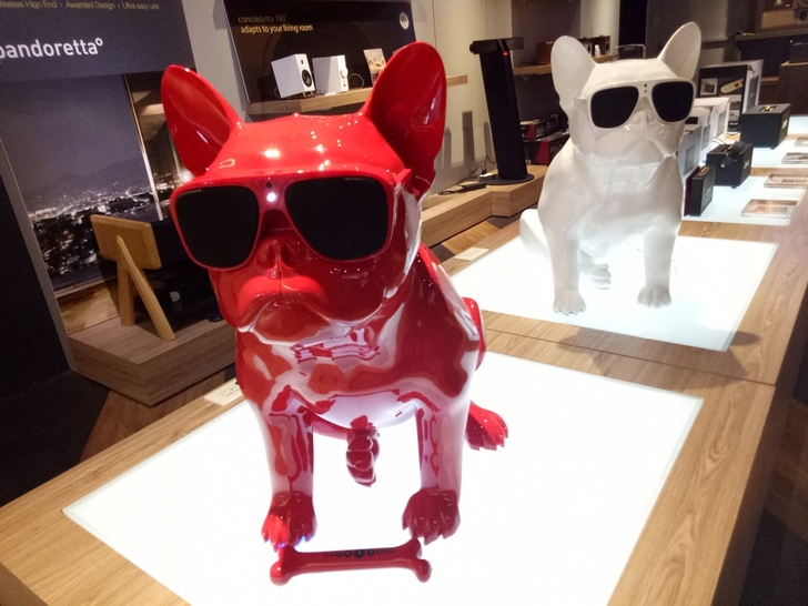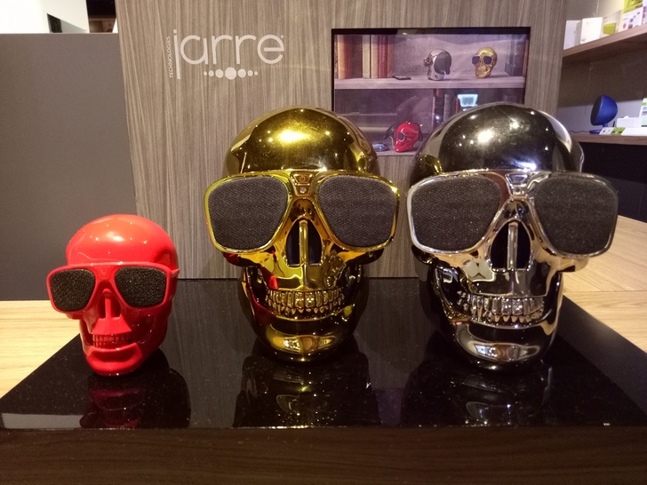 【▼】不說你還不知道,這狗狗與下面的骷髏頭都是造型喇叭呢!太酷了,真適合擺在家門口。