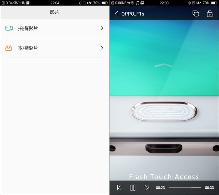 【▼】ColorOS 3.0內建的影片播放器,會區分拍攝影片與本機影片,優點是能控制索取螢幕旋轉與按鍵,不怕看電影時誤觸而跳出。