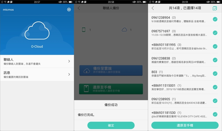 【▼】oppo獨家的雲空間能幫你備份聯絡人與簡訊資訊,只要是oppo手機都還能還原資料到目前本機上,真的超方便。