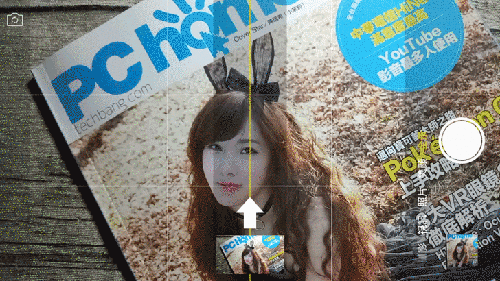 【▼】閃拍功能只要按壓兩個音量鍵中間的部分即可拍照,拍照成功後會回饋震動感告知。