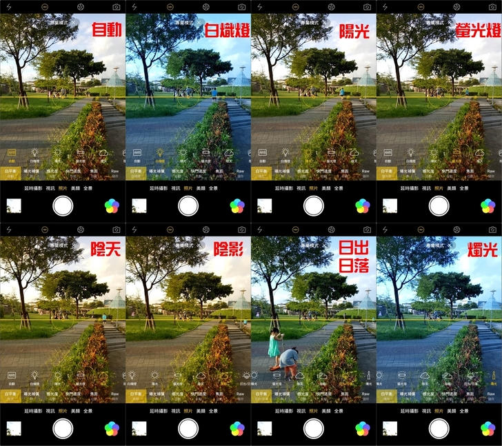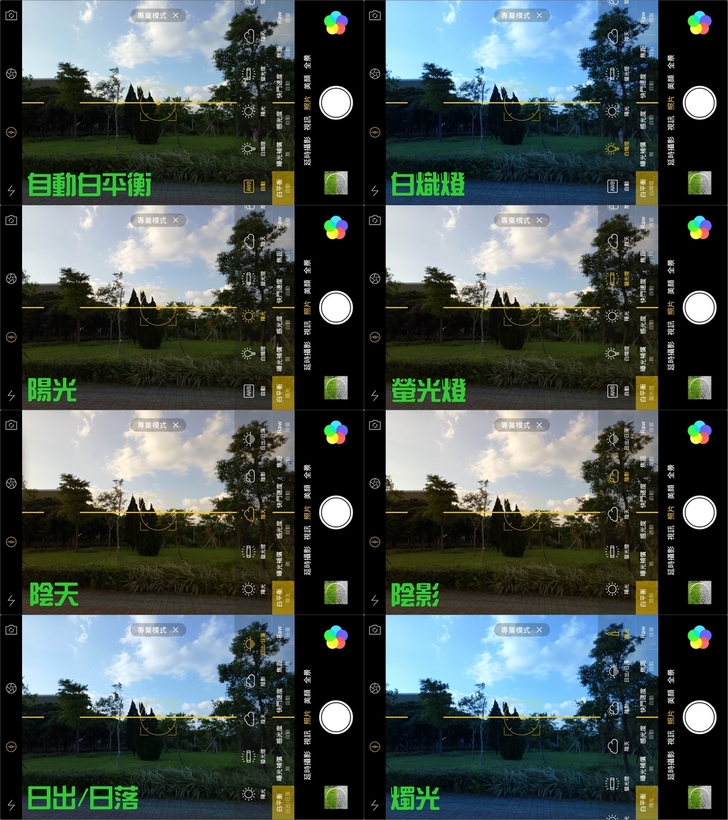 【▼】此外F1s專業模式中,針對白平衡也提供了八種效果,讓妳拍出自動、生動的照片。