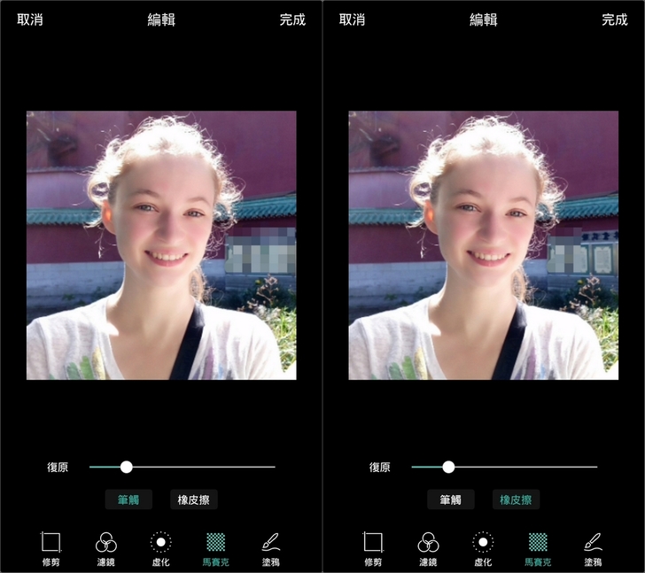 【▼】F1s相片編輯中馬賽克的功能,有筆觸加馬賽克效果,若要去除馬賽克就用橡皮擦來消除,小編以後面的布告欄作示範。