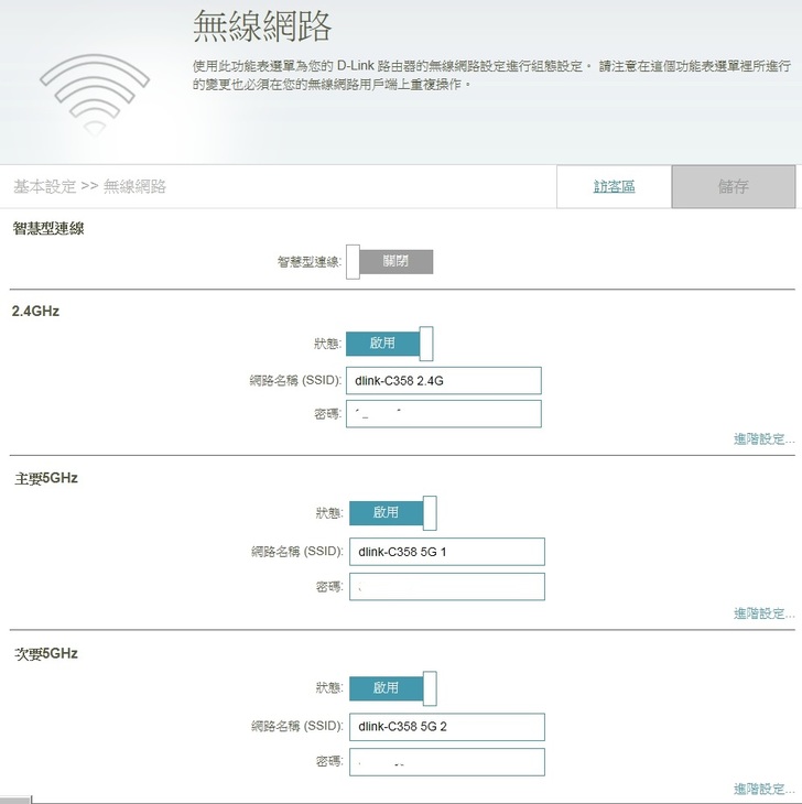 ▼ 而在無線網路設定上,DIR-895L 則提供了智慧型連線的技術,從此不用分 2.4GHz 或 5GHz,只要一開啟 智慧型連線,就會讓 2.4GHz 與 5GHz 整合在一起,以後 DIR-895L 會自動判斷網路連接設備適合哪一種訊號,也只會產生 一個SSID無線網路名稱,不會有好幾個需要選擇的困擾。