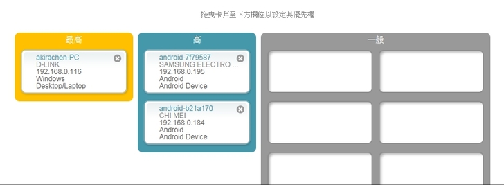 ▼ 因為 PC桌機 會拿來玩 網路遊戲,所以讓它擁有 最高的優先權,另外 兩支手機 當然就是 次高。
