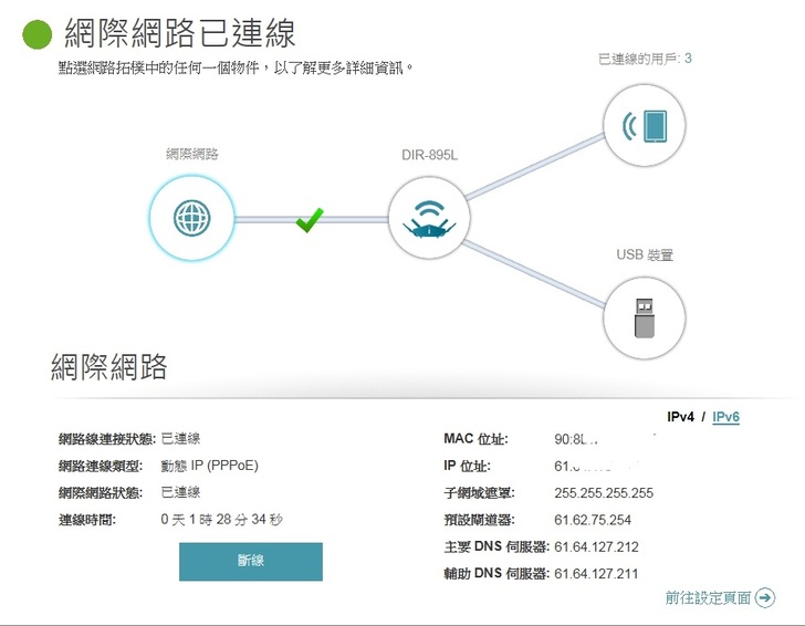 ▼ 在進入 DIR-895L的設定畫面 ,會發現是圖型化介面,而且網路連接資訊一目瞭然。