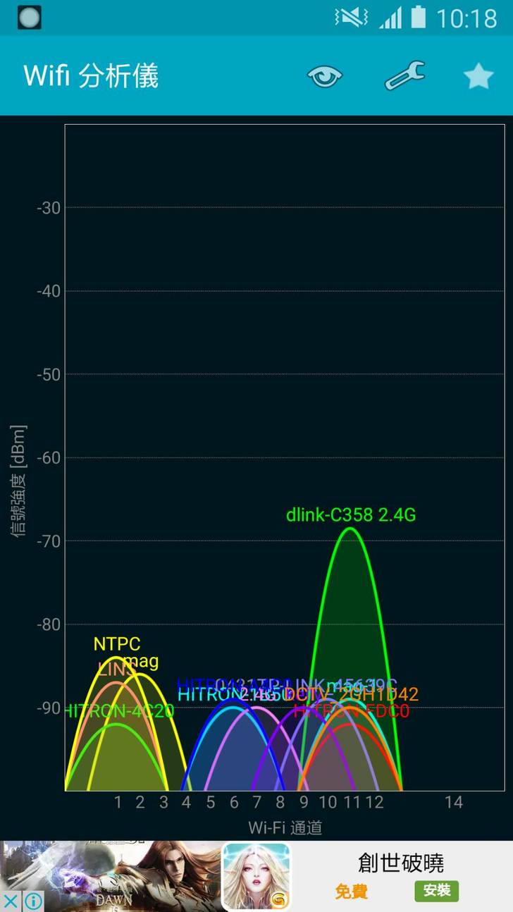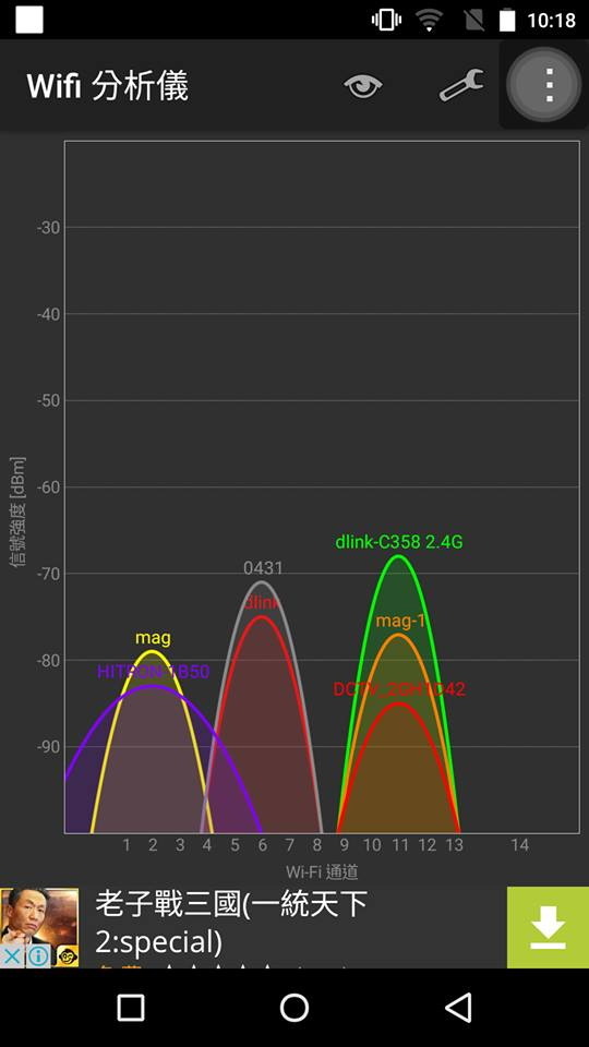 下圖為手頭上兩支手機距離 D-Link DIR-895L 兩層樓左右 的 2.4GHz訊號強度。