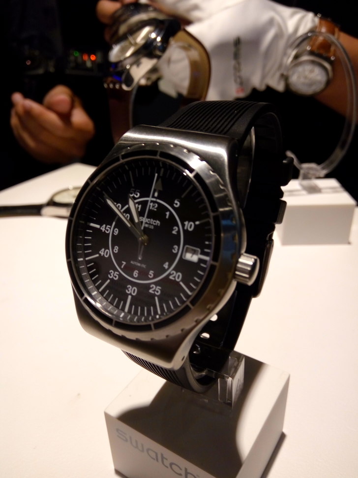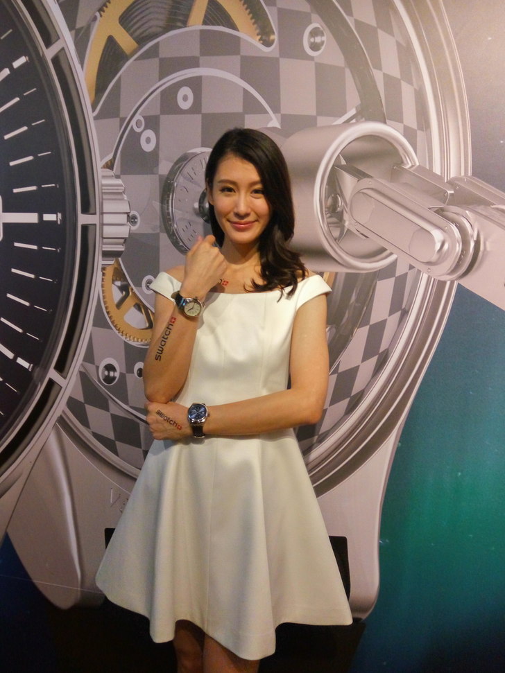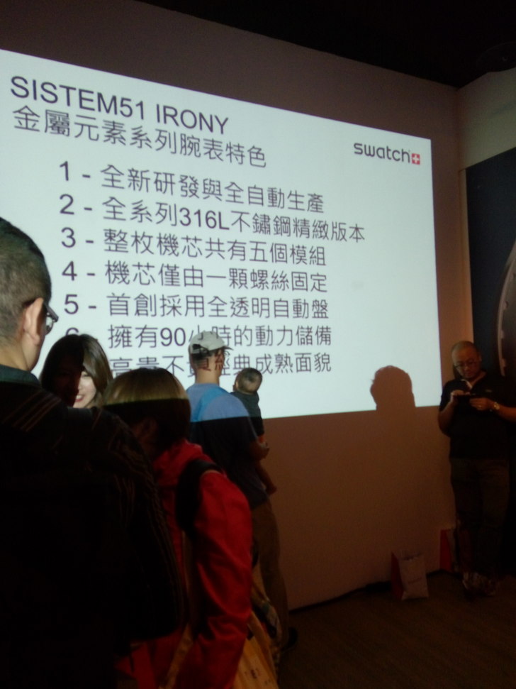 現場大方的展示的本次新款的手錶,不僅如此都有專業的解說人員在旁為你說明,要命的是細心的為你戴上清楚的感受整個錶和你接觸和搭配上的感覺,展示款的手錶本來以為是男性為主陽剛感覺,想不到細心的swatch居然是使用男女都合適的大小,而且透明機芯的自信,實在連戴著的人都忍不住覺得炫(看來今年冬天都來穿七分袖),有皮革優美的大地呼喚(乾淨高雅感覺脫俗)和靈魂探測(這個錶面真的有羅盤又像星盤的設計,下回會不會結合東 方風水,直接就可以錶面轉動開運~~哈),黑洞引力是難得的膠刻紋錶帶,很有運動感又像時下科技錶型,完全可吻合運動量大怕損害皮帶又不想要太陽剛的只有金屬表面好選擇。