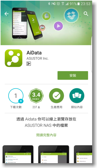 ▲安裝完立即啟動AiData,由於在家中的WIFI環境下,就立即找到我的NAS