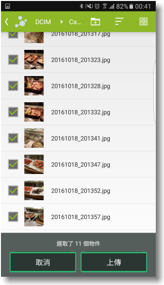 ▲把想要上傳的照片透過勾選的方式選定後,點擊上傳的按鍵,就能順利完成照片上傳至NAS的工作。