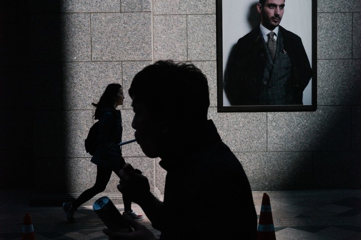 這張是在首爾拍攝的,首爾都市裡的建築讓下午的陽光有很多層次,這張我刻意讓前景的男士形成剪影的效果,但後方的學生卻希望能強化一些細節,若螢幕的解析度以及色彩支援不夠,在挑片時後方那位學生臉部的細節會很容易被忽略。