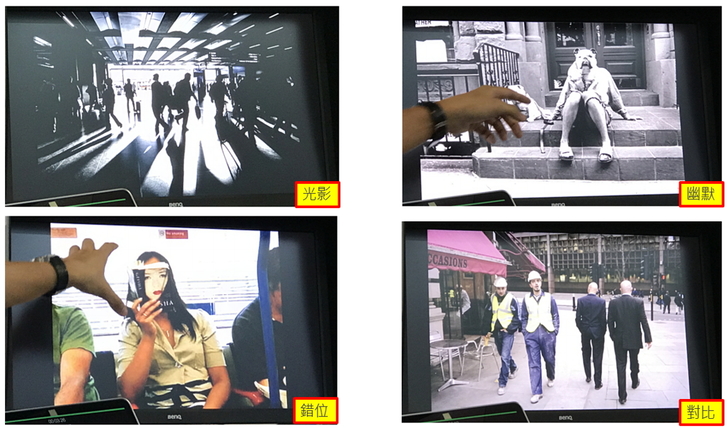 這張是幾年前在香港機場拍的,當初在選照片時黑白彩色考慮了很久,本來想用黑白完全凸顯牆上的影子以及小男生之間的關係。沈澱了幾週之後決定還是調成彩色,將現實的彩色(小男生)以及虛擬的黑白(牆上的陰影)做出更強的對比。如果當時有 BenQ 快速色彩切換鍵的話真的可以省掉不少時間。(如上左圖)