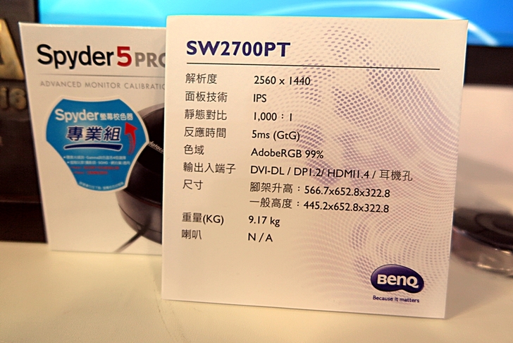 現在專業色彩管理螢幕SW2700PT還有搭配的Spyder5pro 專業色彩校正器,