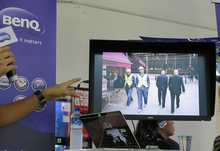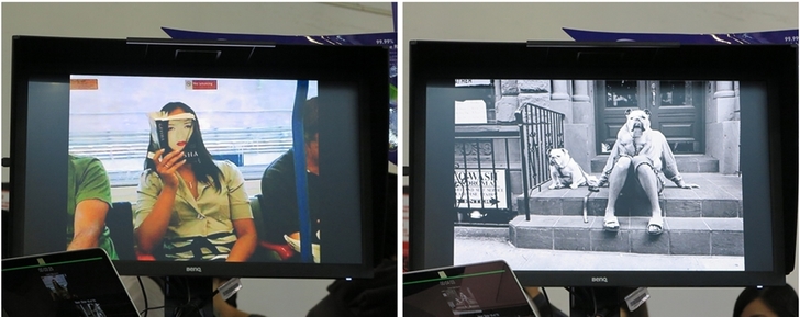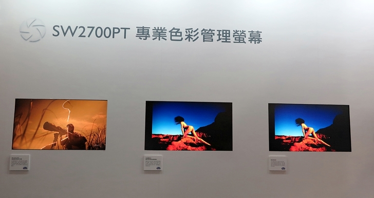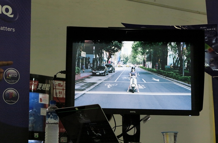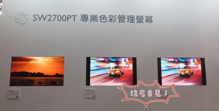 會場展示的3台螢幕中有2台同時播放相同影像,可以看得出來出廠時的螢幕就幾乎沒有色差!