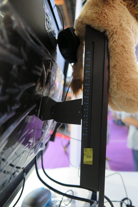 27吋的大螢幕後方的上下升降腳架,高度及角度調整都很容易,而且很穩固。