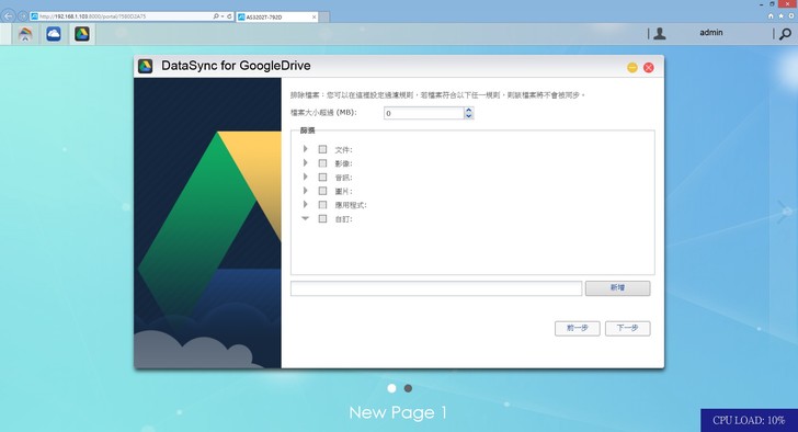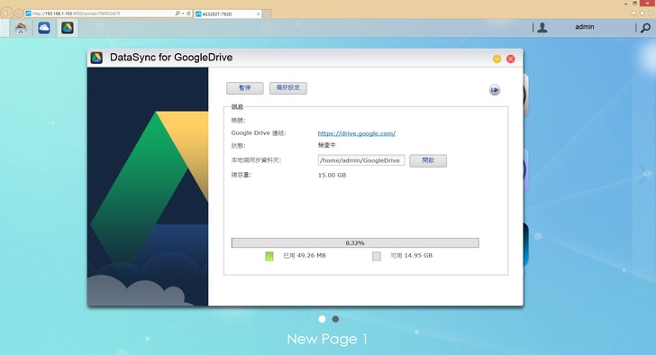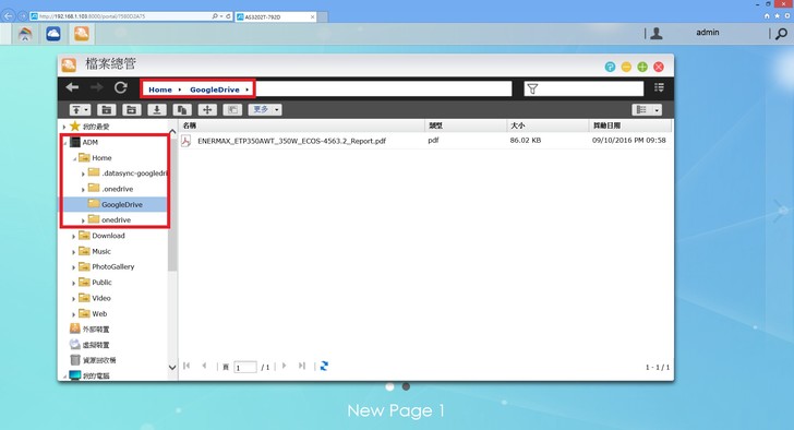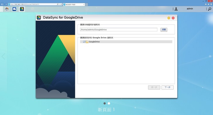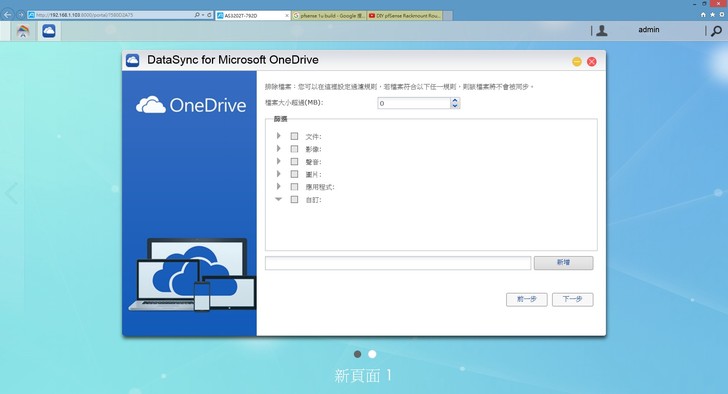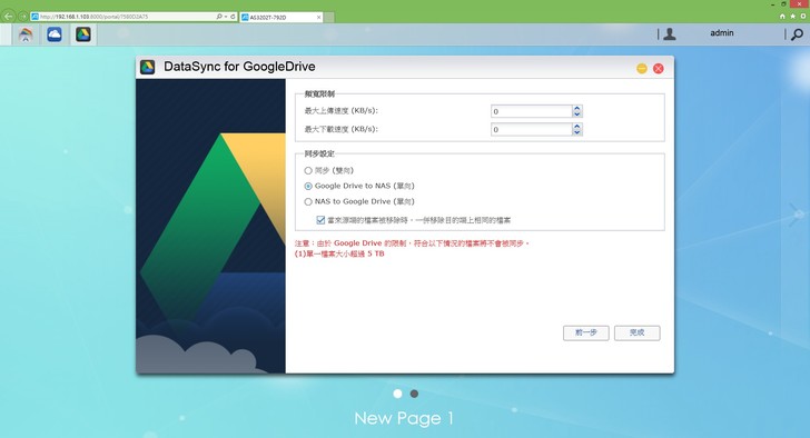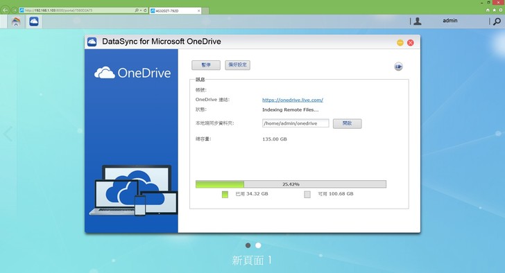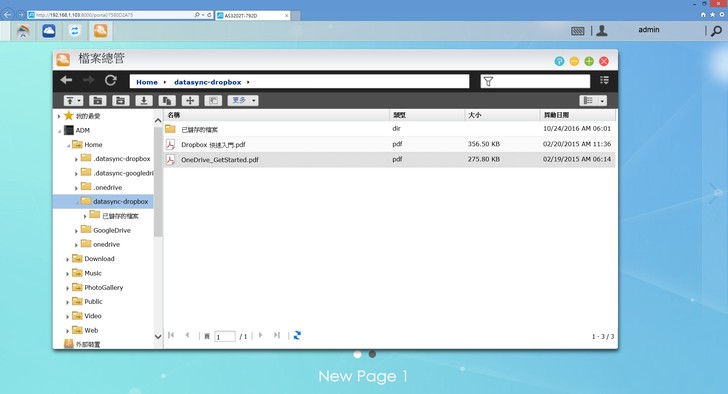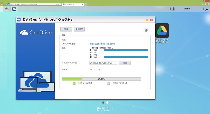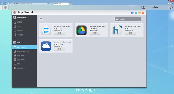 前面有提到說我要將儲存在OneDrive與Google Drive上的資料都放置在NAS上,所以就可以利用Asustor推出的DataSync 軟體將檔案同步回來,目前DataSync僅支援Dropbox、GoogleDrive、OneDrive、Hubic這四個,我個人是覺得可以再推出其他空間的同步應用會更方便許多。