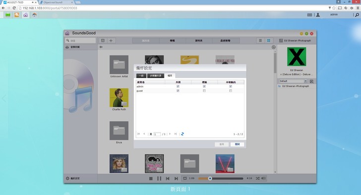 共用-當共用的勾被取消掉時,該名使用者則無法透過SoundsGood來播放音樂。