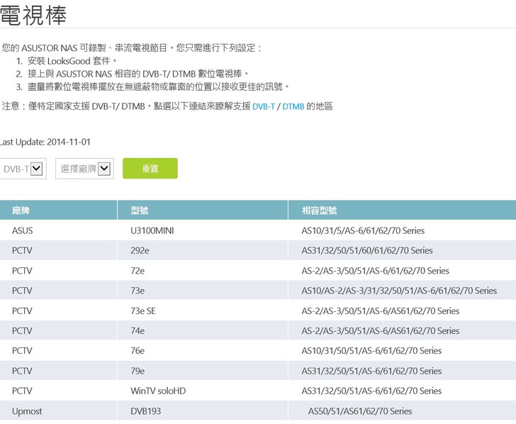 ▼這邊是Asustou NAS所支援的電視棒型號,比較可惜的是支援的型號並不多,而且支援清單的更新也蠻久沒有更新了~ 希望原廠可以好好的在這方面進行維護,別讓這好用的功能消失。