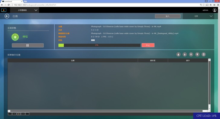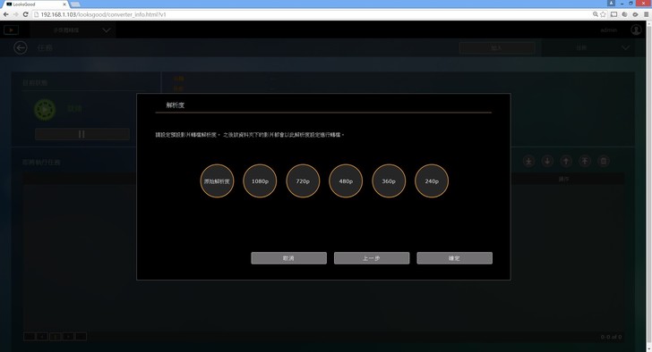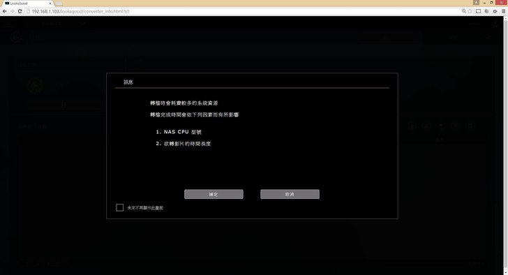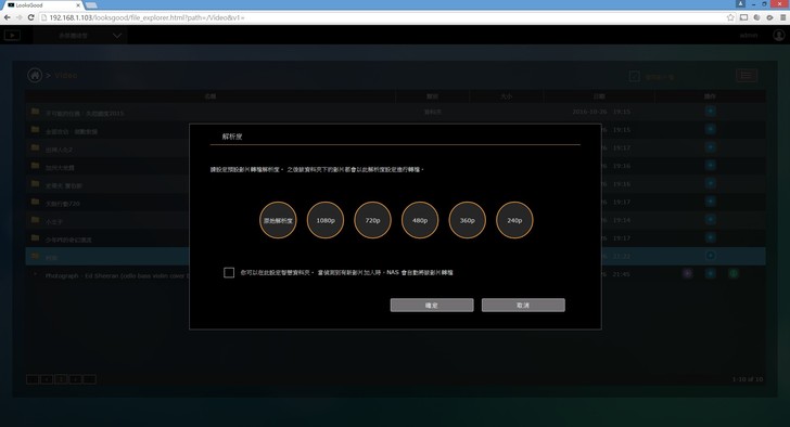▼點選加號圖示則能對影片檔案做轉檔的動作,轉檔是直接在NAS上面進行轉檔,不用使用電腦也能輕鬆轉檔,超方便的~ 有著Intel Celeron J3160四核心處理器強大的強持下,效能與耗電都有不錯的水準。