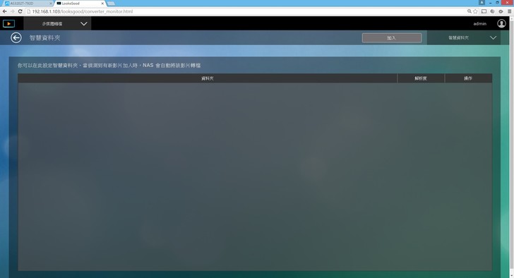 ▼智慧資料夾,可以與電視錄影功能做搭配,當錄影完成的電視節目儲存至指定的智慧資料夾,然後轉檔功能就會自動的開始轉檔囉! 這樣的分工模式還蠻便利的,只需要透過一台NAS就可以搞定了。