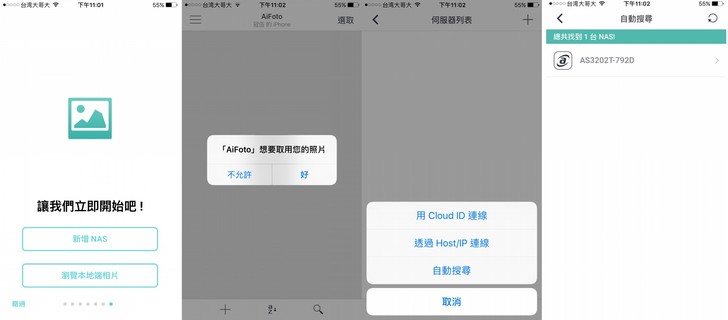▼連線設定-讓我們開始吧! 這邊會詢問是否允許讓AiFoto存取手機中的相片,允許才能透過AiFoto將手機內的照片上傳至NAS喔!