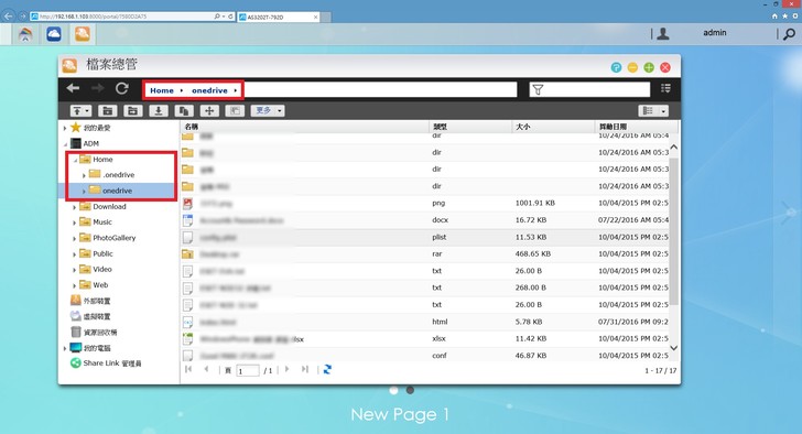 ▼同步完成的資料皆會存放在Home>onedrive裡,可以透過ADM系統內建的檔案總管瀏覽。