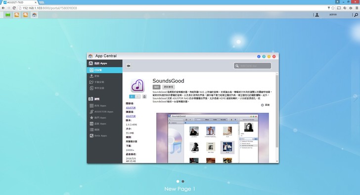 ▼SoundsGood出廠時是沒有預先搭載的,所以要使用要到App Central 上下載,下載完成即可開始在NAS對音樂檔案做管理,再搭配AiMusic手機也可以直接存取喔!
