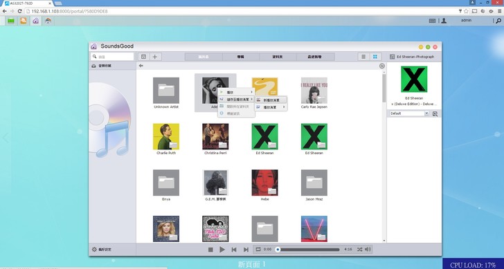 ▼SoundsGood預設讀取的資料夾是/Music 所以我已經事先將檔案都放置到/Music資料夾裡囉! 當然讀取的資料夾也可自行更改調整。音樂有設定專輯、歌手、專輯封面的都會直接顯示出來。