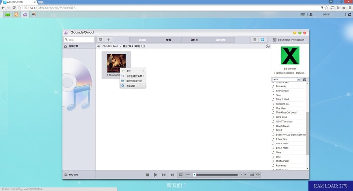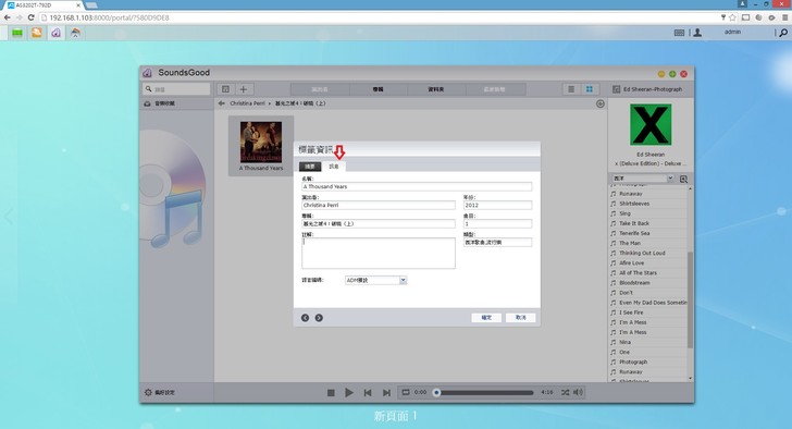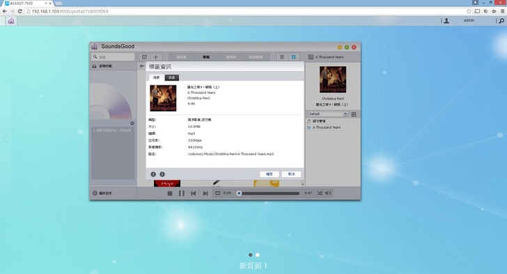 ▼然後選擇訊息,即可對音樂的資訊做修改,比較可惜的是專輯封面沒辦法在這邊做處理,算是比較不便的地方,另外如果使用的帳號權限不足也無法做更改,這點前面有提到過了~