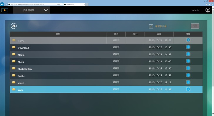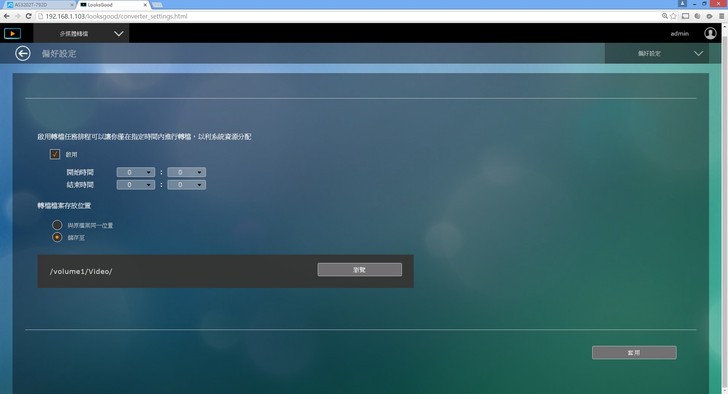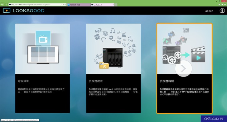 ▼LooksGood 為Asustor 推出的影音軟體,可以從App Central上下載,LooksGood提供了電視錄影、多媒體總管、多媒體轉檔三種服務,其中電視錄影算是個蠻特別的功能,希望手上的電視棒也可以支援呀! LooksGood在電腦上是以一個獨立的網頁來呈現使用的。