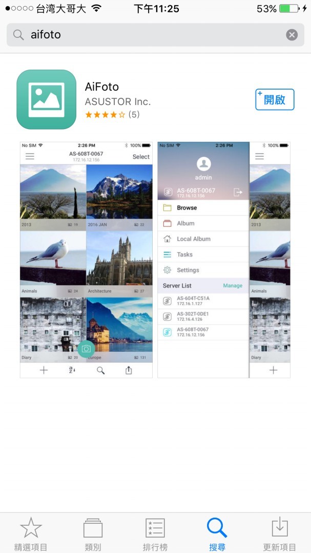 ▼AiFoto為手機上瀏覽NAS照片的APP,功能也都與Photo Gallery相似,所以可以很輕鬆上手,也不會因為是手機功能有所減少。一樣的提供Android與Ios雙平台。