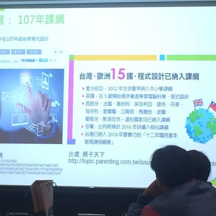 後來老師提到了"程式設計"全世界已經從小學就開始在學習,我突然想到我那國小三年級的大兒子,已經在學校上電腦課,並且學習一些電腦的東西。想了一下,也許我沒有學過程式設計,但是我兒子會學到,等10年以後,程式設計應該就跟現在開電腦開關一樣簡單了。