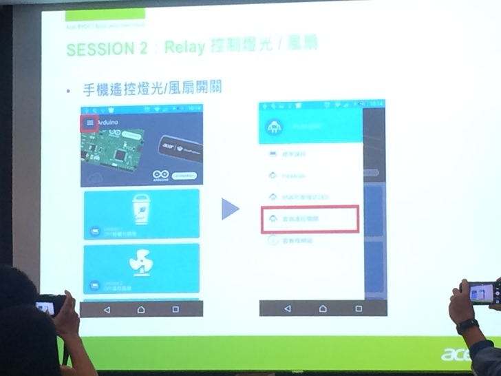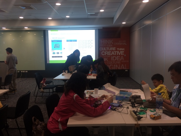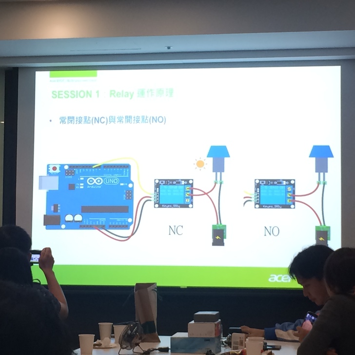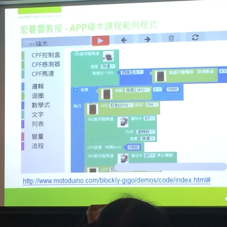 最後在實際動手操作中,一開始有一點害怕,畢竟是第一次接觸,等到實際操作後發現,只要仔細聽老師說的步驟,跟者老師一起開始動手做真的很簡單,拿出CPF雲教授和雲教授配對好的手機,把Arduino擴充板連接好,電源接到正確位置並且鎖緊,拿出雲教授與擴充板連接好並打開電源,回到手機端這邊開啟網路連線並且開啟雲教授APP,開啟程式之後雲教授會自動去連結,按照步驟就可以使用小夜燈啦!從一個從沒有接觸過人,到會使用雲教授,按照步驟大概只要20分鐘就會了,真的很神奇又簡單,很吸引人想一直玩下去,實在是太讚啦!!
