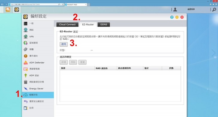▼前面的連線都是以內網的環境做連線,如果要給遠方的同學做使用還需要再做些設定,開啟 偏好設定,輕鬆存取>EZ-Router 啟用EZ-Router (如第二張圖)。