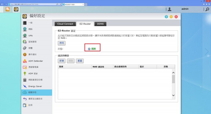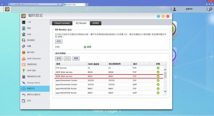 ▼如果連結都製作完成,可是點進去都出現無法連線的朋友,檢查一下 偏好設定>輕鬆存取>EZ-Router 有沒有將ADM Web Service加入至EZ-Route中的清單裡。