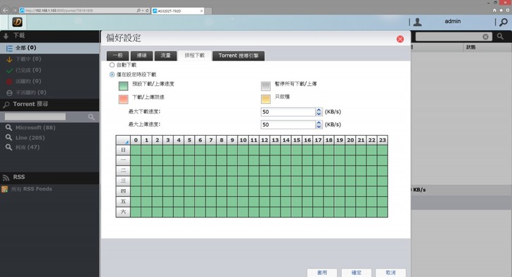 ▼排程下載,限制下載狀態超好用的,例如星期六日早上九點到十點有人要使用網路,就可以在排程中設定,將星期六日早上九點到十點停止下載任務或限速。
