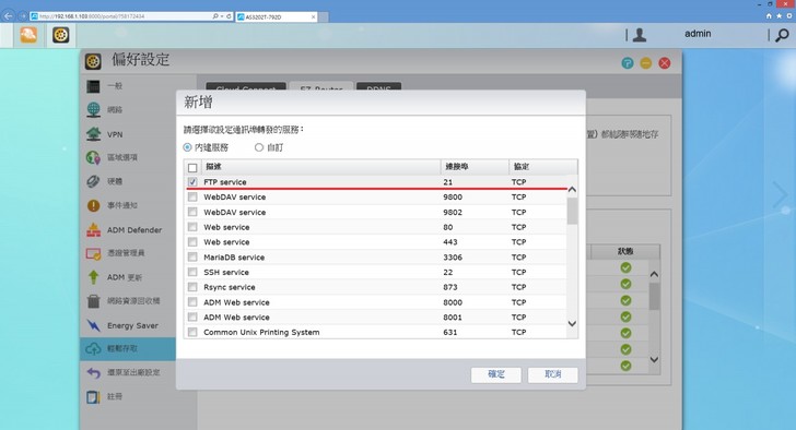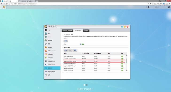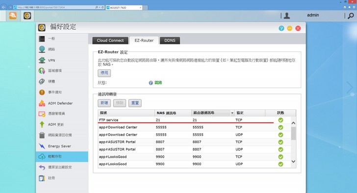 ▼要從外面連線至NAS只需要在EZ-Router 新增 app#Download Center 的服務就可以在外面連線回來管理下載進度。
