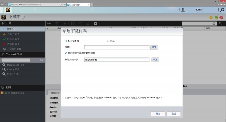Download Center算是我蠻期待的功能之一,對於有常常在BT下載的玩家真的是一大福音,而且Download Center還有內建強大的種子搜尋功能,這樣找資源又更方便啦! 科技始終來自於惰性呀XDD 此外,搭配著手機上的AiDownload APP在外面也可以管理Download Center下載的任務,就連新增下載任務也可以呢~