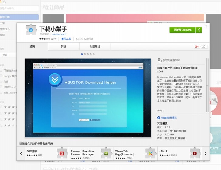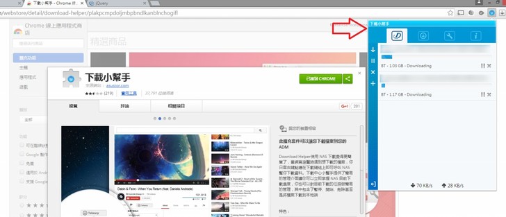 ▼下載小幫手為Asustor在Chrome上推出的軟體應用,可以快速的管理Download Center 上的下載任務,並結合了Takeasy 影片下載軟體,瀏覽Youtube、土豆網這類的影音平台看到想要的影片,就可以直接透過Takeasy做下載。