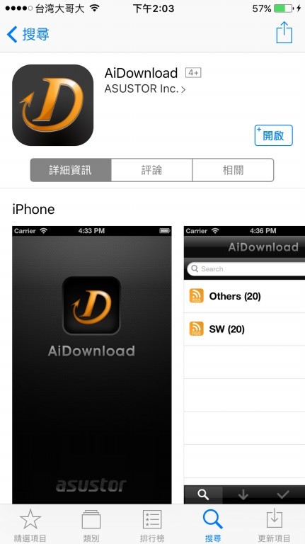 AiDownload是提供給使用手機或行動裝置的朋友來管理下載的管理APP,基本的功能都有,也可以直接從手機上新增BT任務,還不錯用的說~ 在外面也可以連線回來管理NAS上的下載任務,時時刻刻都能掌握最清楚的下載進度。
