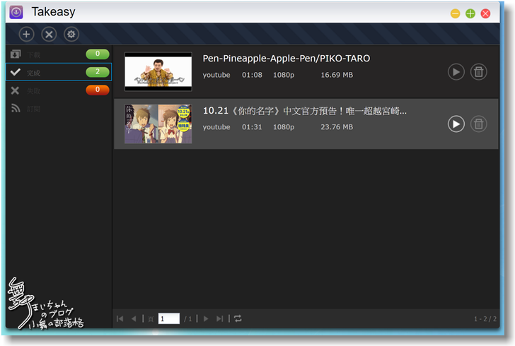 ▲下載後的影片,都整理列表在『完成』頁籤裡,方便隨時可以查看