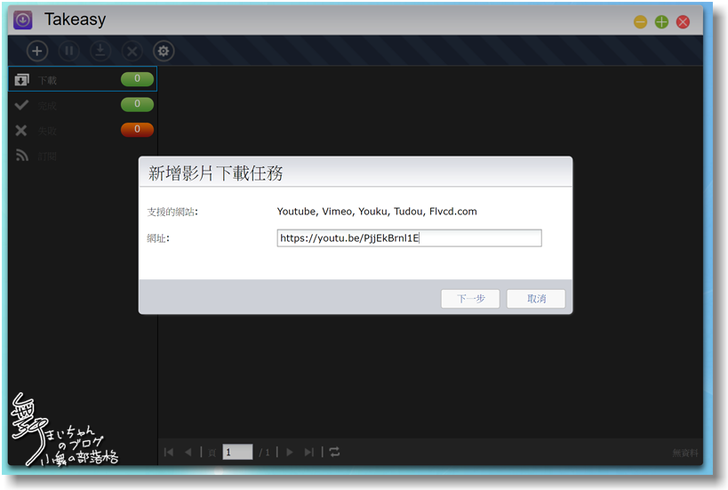 ▲《Takeasy》提供可下載Youtube、Vimeo、Youku優酷、Tudou土豆網、Flvcd.com等網站的影片下載,只要有連結即可。