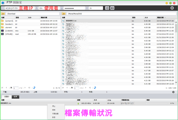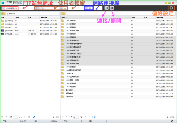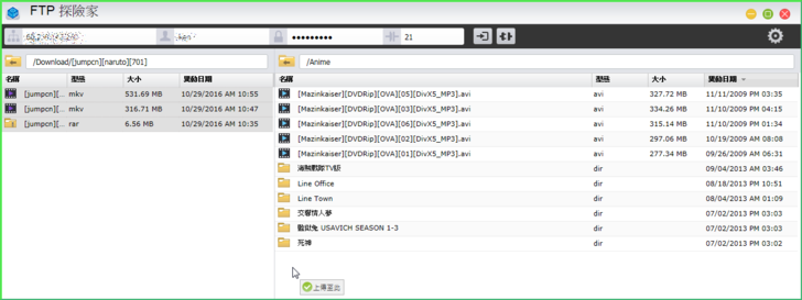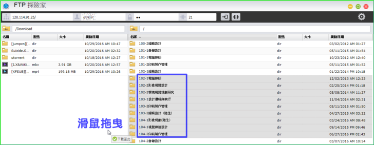 【▼】不只可用滑鼠拖曳方式上下傳資料夾目錄,針對單一檔案或多個檔案也是沒有問題的!
