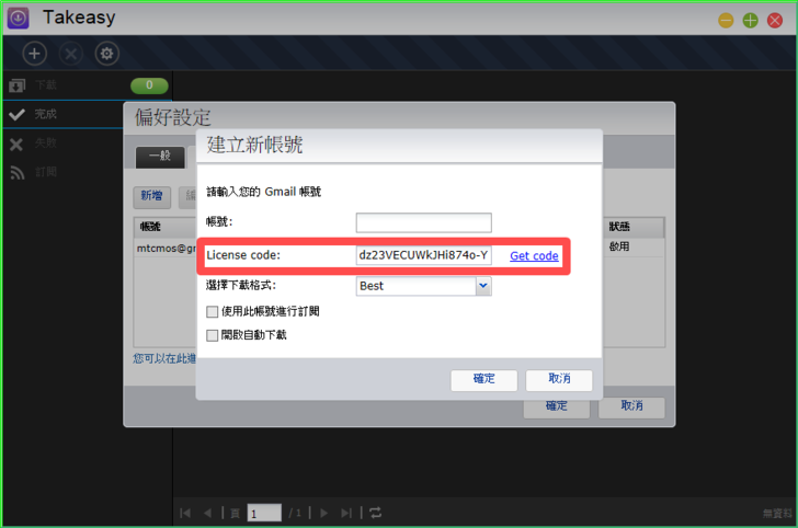 【▼】而在偏好設定中的訂閱,會與Google帳號作連結並提供授權碼,Takeasy結合 Youtube 頻道訂閱,讓你的 AS3202T 自動接收已訂閱的最新節目!