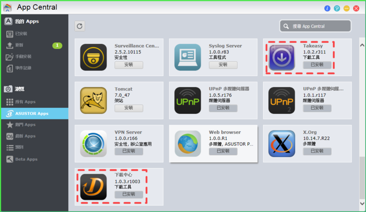 【▼】在前一個任務大家已經知道強悍的ADM2.6作業系統,要執行下載任務,得到App Central安裝好下載中心與Takeasy兩大套件。