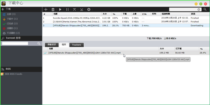 【▼】Download Center將會開始依照你的RSS feed以及篩選條件來自動下載Torrents。