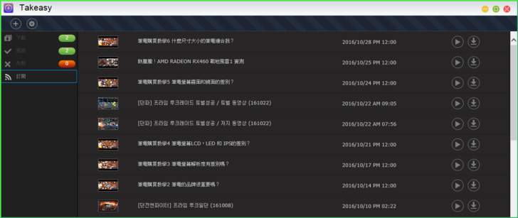 【▼】Takeasy訂閱的內容,會將您Google帳號有訂閱的Youtube頻道一一列出,連韓文也沒有問題唷~