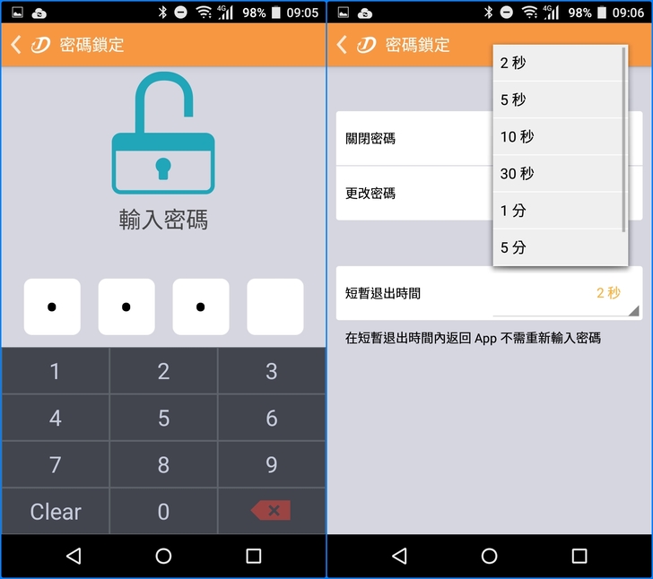 【▼】而密碼鎖定是什麼呢?密碼鎖定就是開啟AiDownload App會問你密碼,輸入對才能登入AS3202T NAS中,對於短暫退出時間不跳出輸入密碼,最長可設到五分鐘。