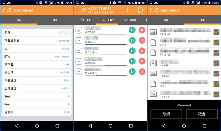 【▼】在下載中心也提供了行動裝置用的App:AiDownload,它提供您遠端遙控AS3202T上的 Download Center 透過 AiDownload 您可以立即監控並管理您 NAS 上的下載任務,當你回到家,一切都下載好了,省時又省力。