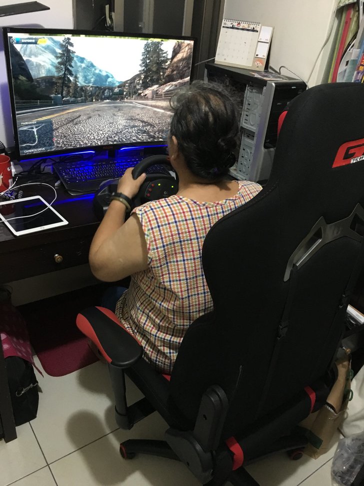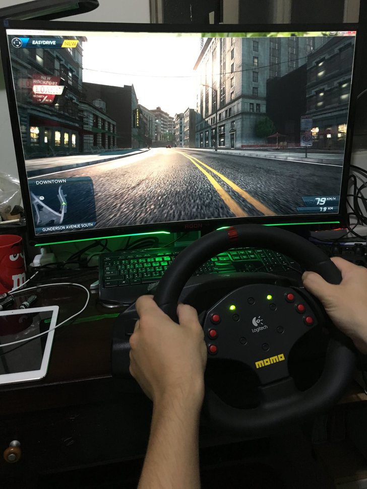這樣的螢幕一定要拿來玩賽車遊戲的阿! 很可惜我只有一個AG322FCX,如果有三個就可以圍成一整個弧形,玩起來一定更爽XD