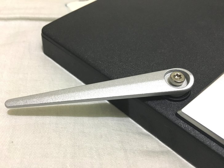 在螢幕的右後方,有個可以展開與收合的梗,按照官方圖示可以用來掛耳機,當然如果想掛別的也可以,不過由於我慣用把耳機掛左邊所以就沒有用他了XD